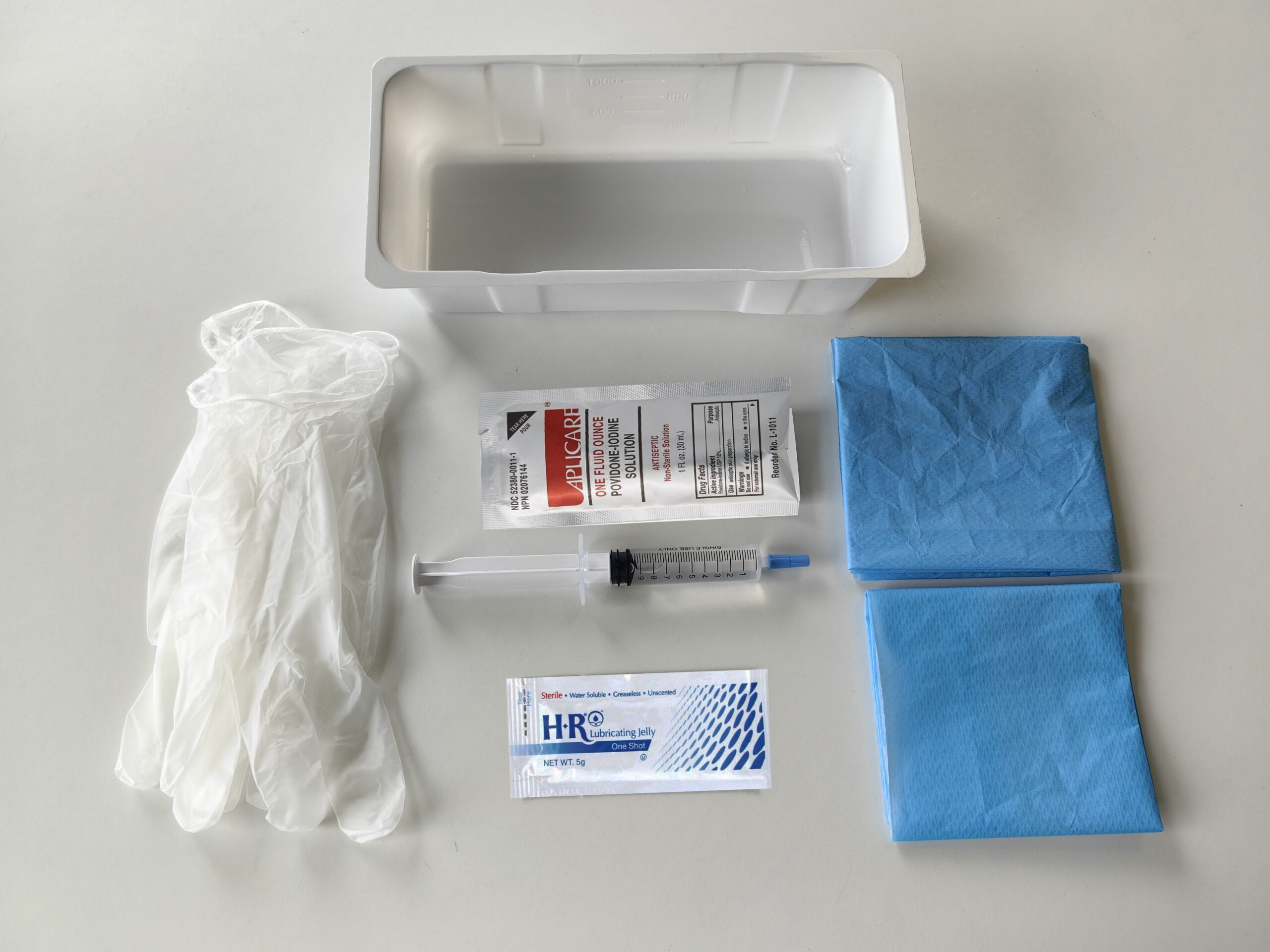 | GT754-10BISF | Bandeja para inserción de sonda foley, jeringuilla prellenada con agua estéril de 10ml con yoduro de povidona al 10% |